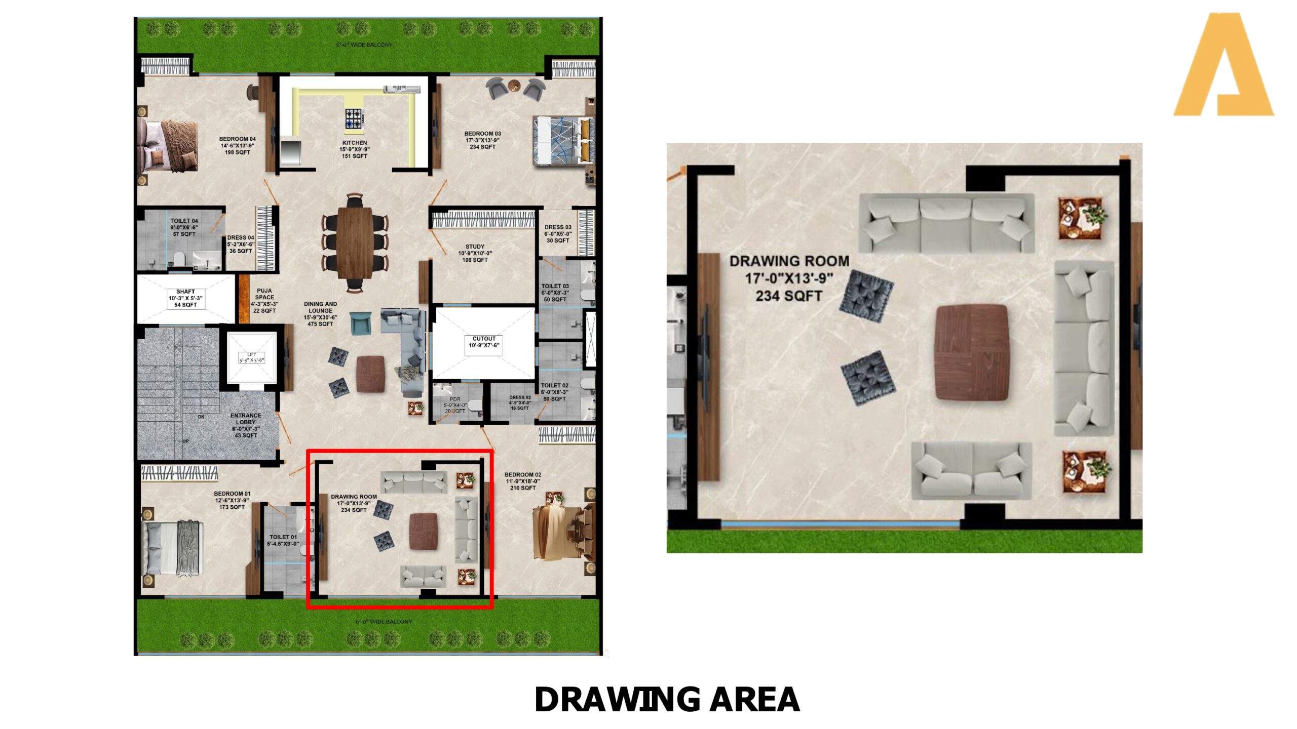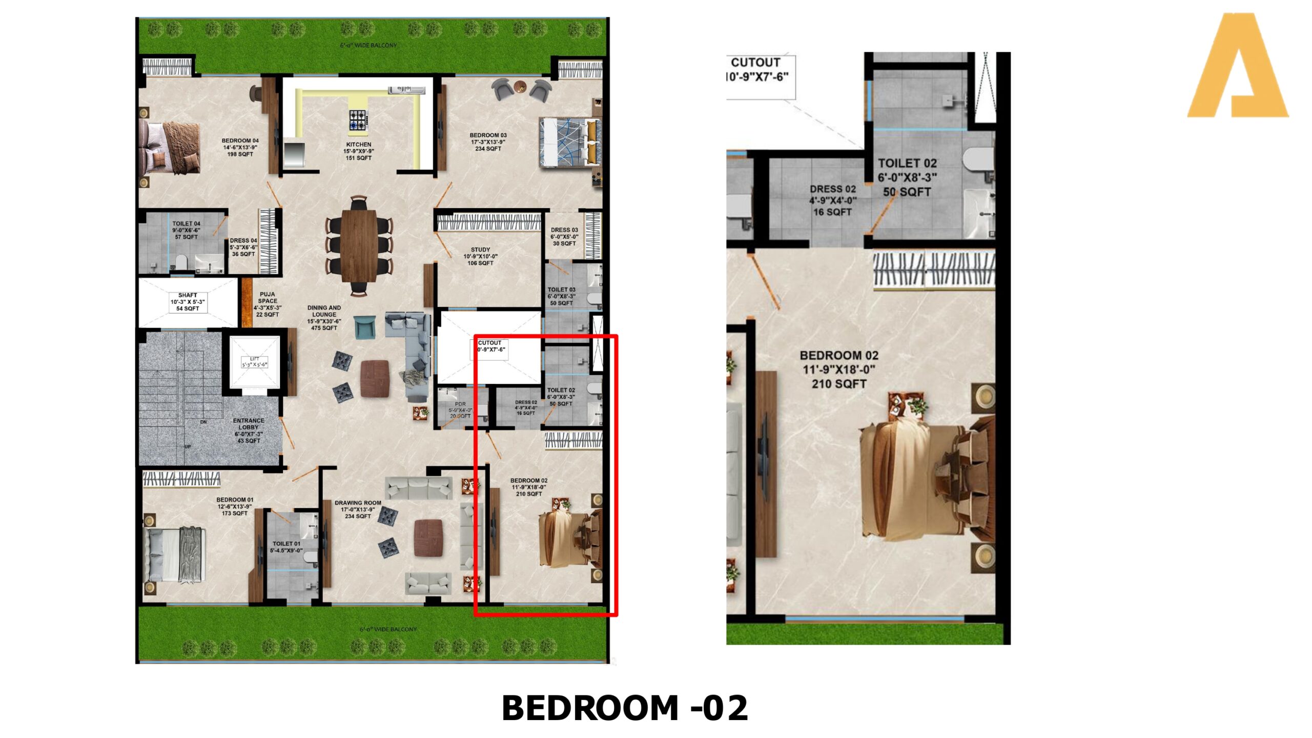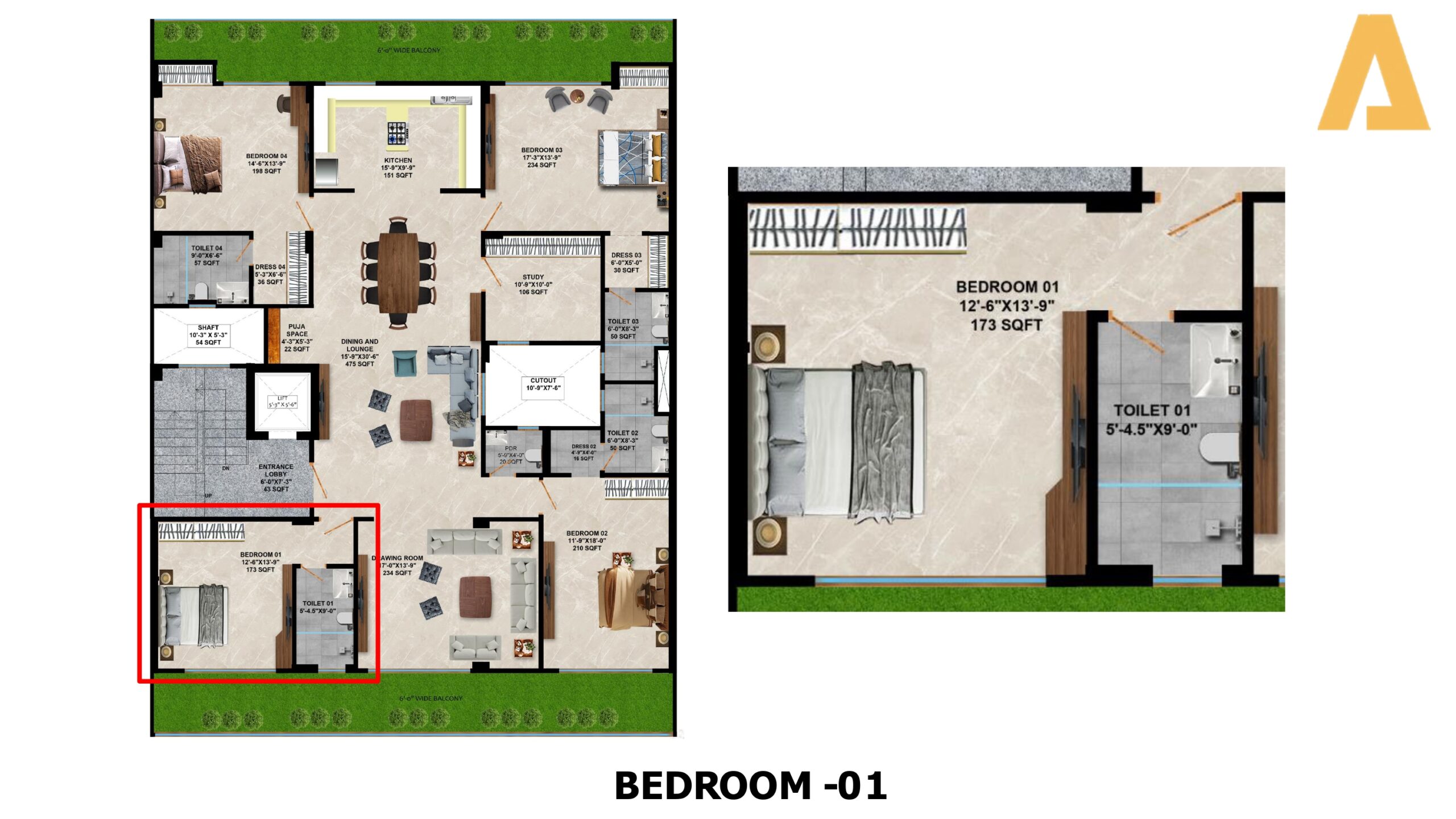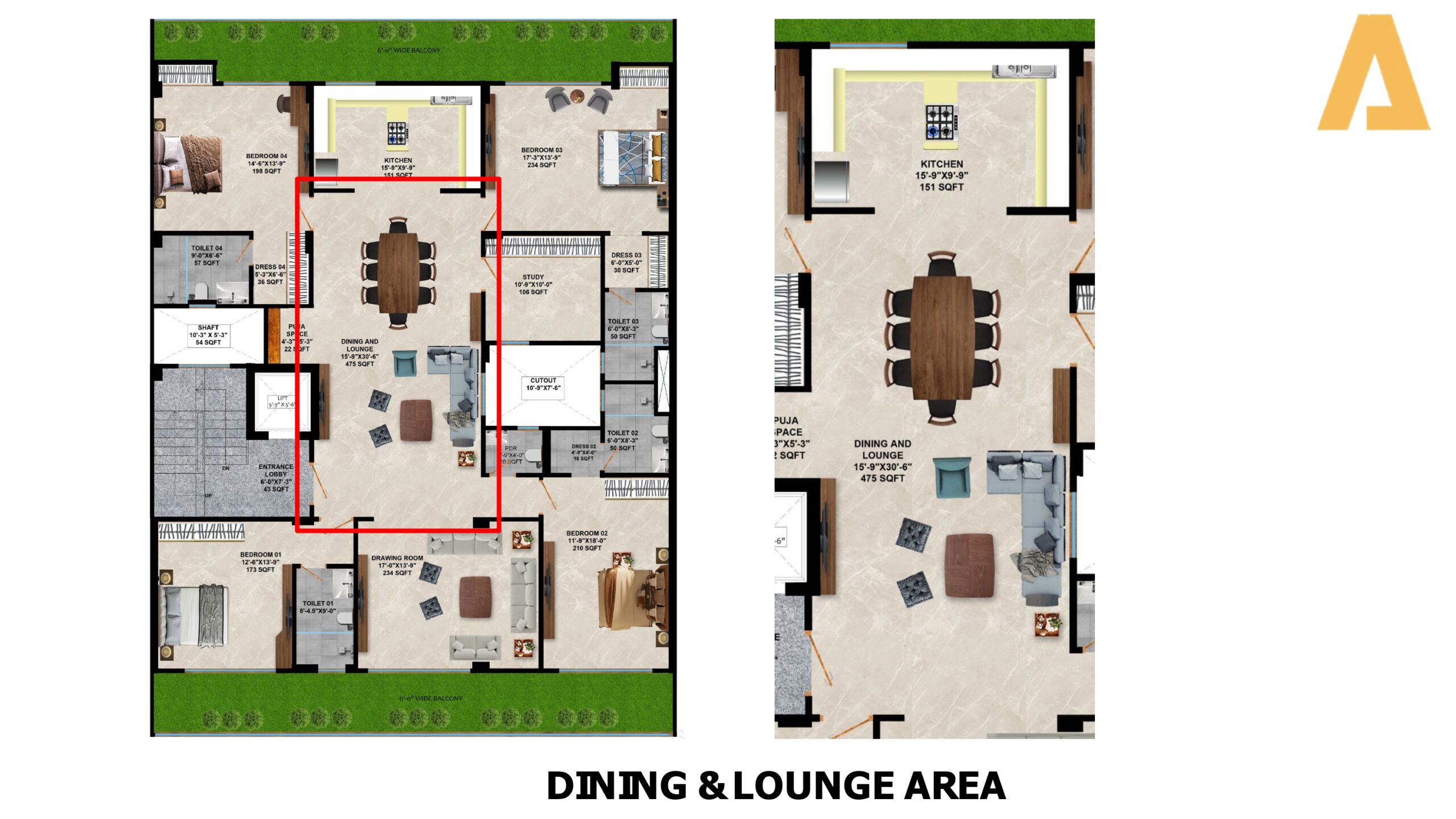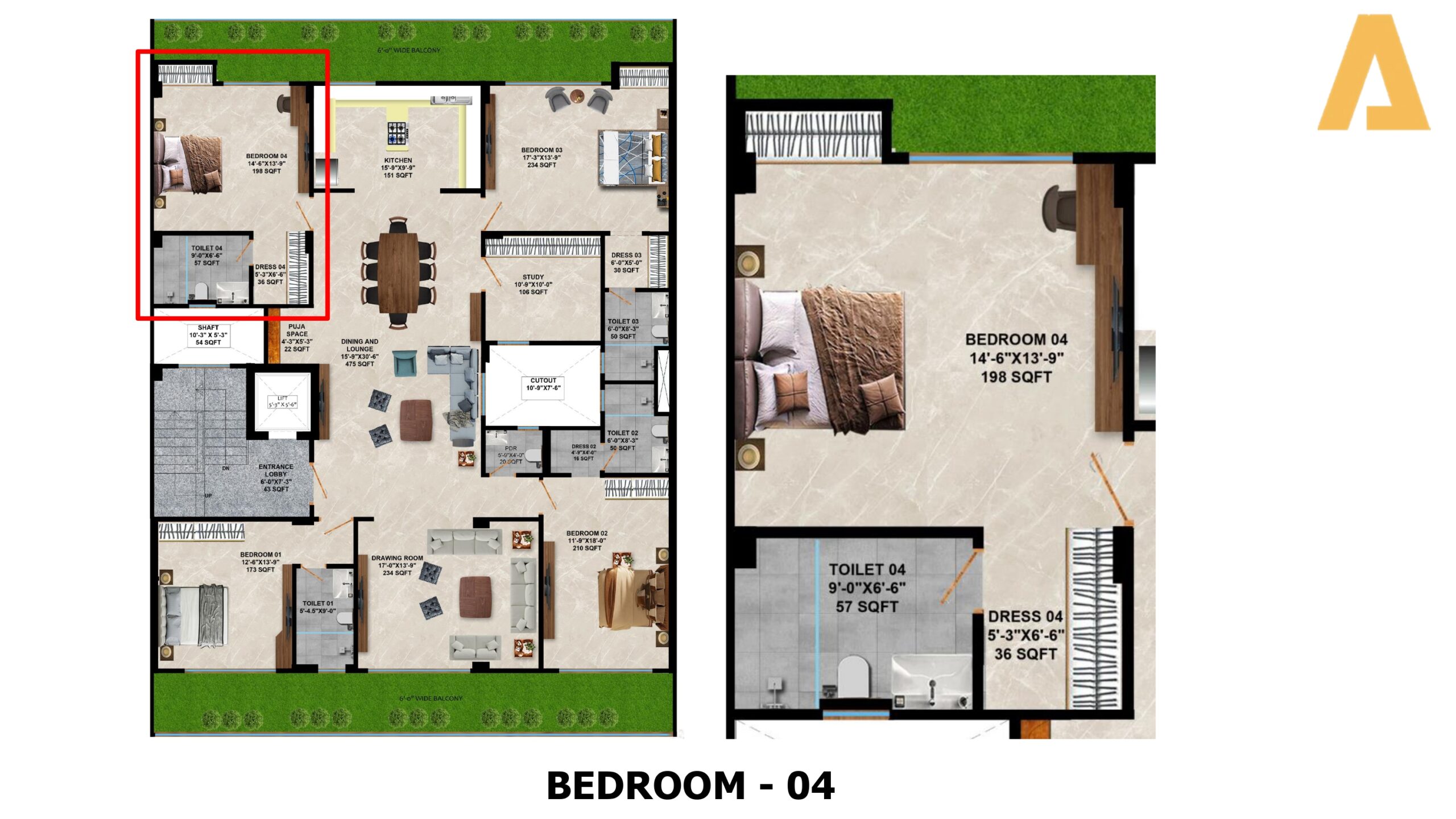 • Configuration: 4 BHK